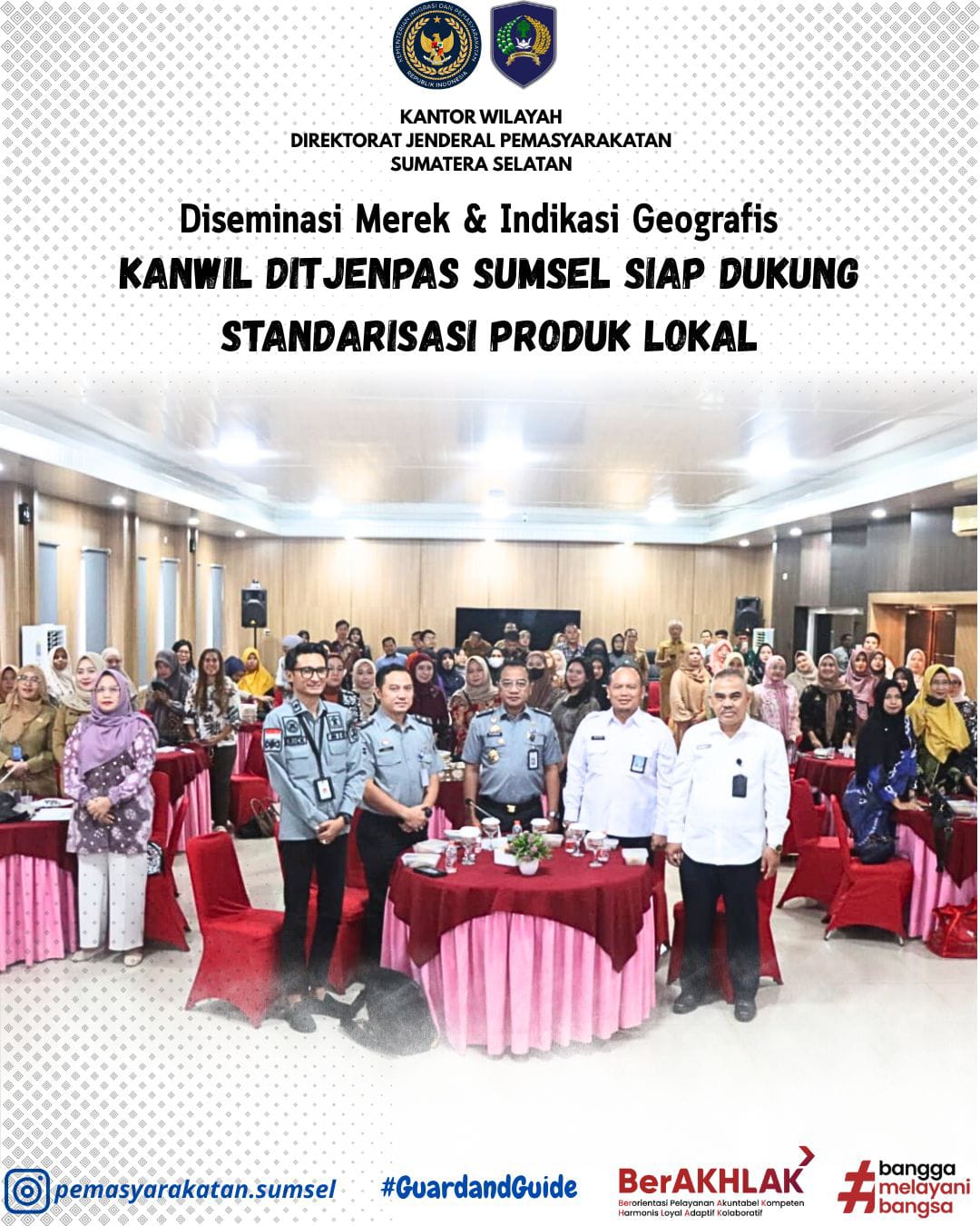Palembang – Kepala Kantor Wilayah Direktorat Jenderal Pemasyarakatan (Ditjenpas) Sumatera Selatan yang diwakili oleh Kepala Bagian Tata Usaha dan Umum Zulkifli Bintang menghadiri undangan kegiatan Diseminasi Merek dan Indikasi Geografis yang diselenggarakan oleh Kantor Wilayah Kementerian Hukum Sumatera Selatan pada Senin, 19 Mei 2025.