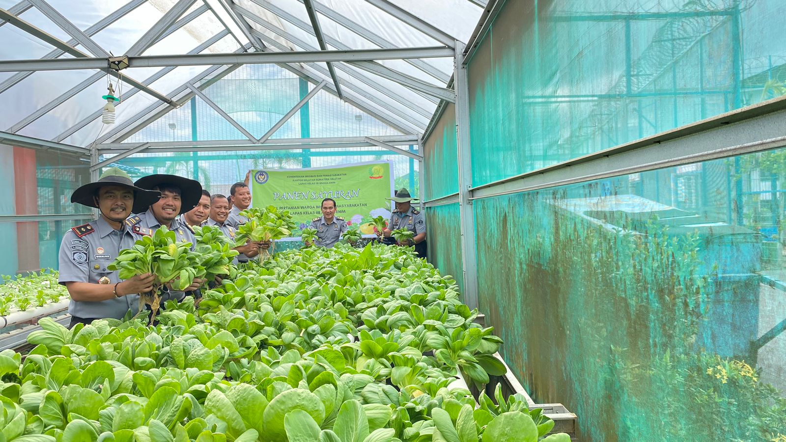 Muara Enim – Lapas Muara Enim kembali melakukan panen Raya tanaman hidroponik berupa Sayuran Pakcoy di area Hidroponik