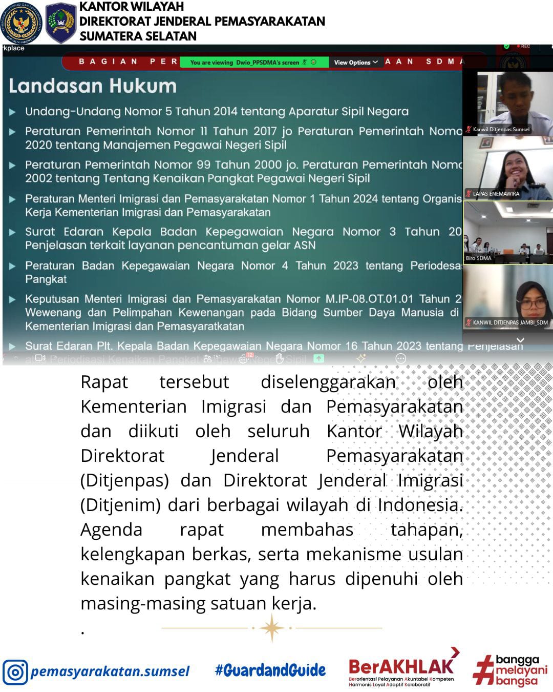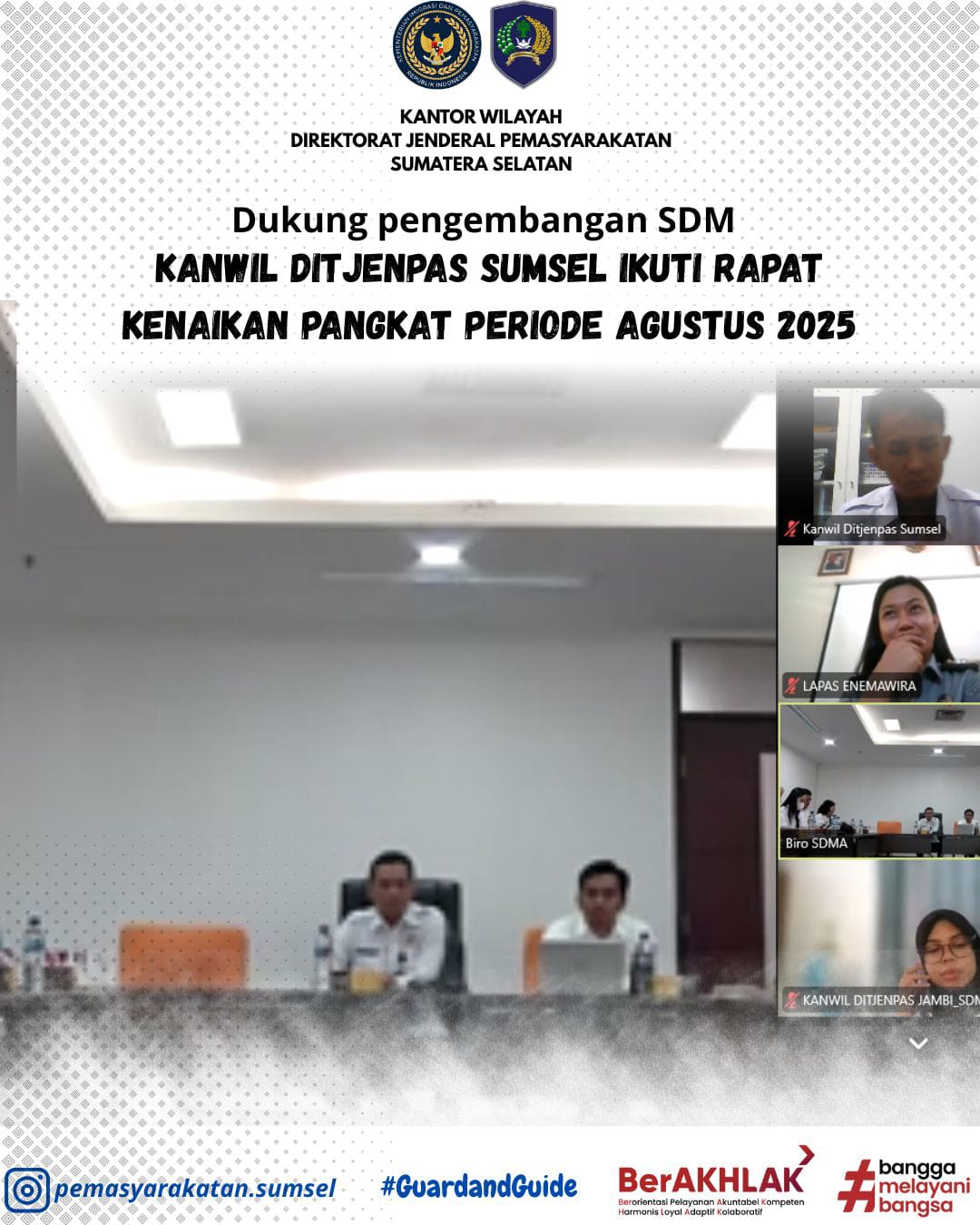 Dukung Pengembangan SDM, Kanwil Ditjenpas Sumsel ikuti Rapat Kenaikan Pangkat Periode Agustus 2025
