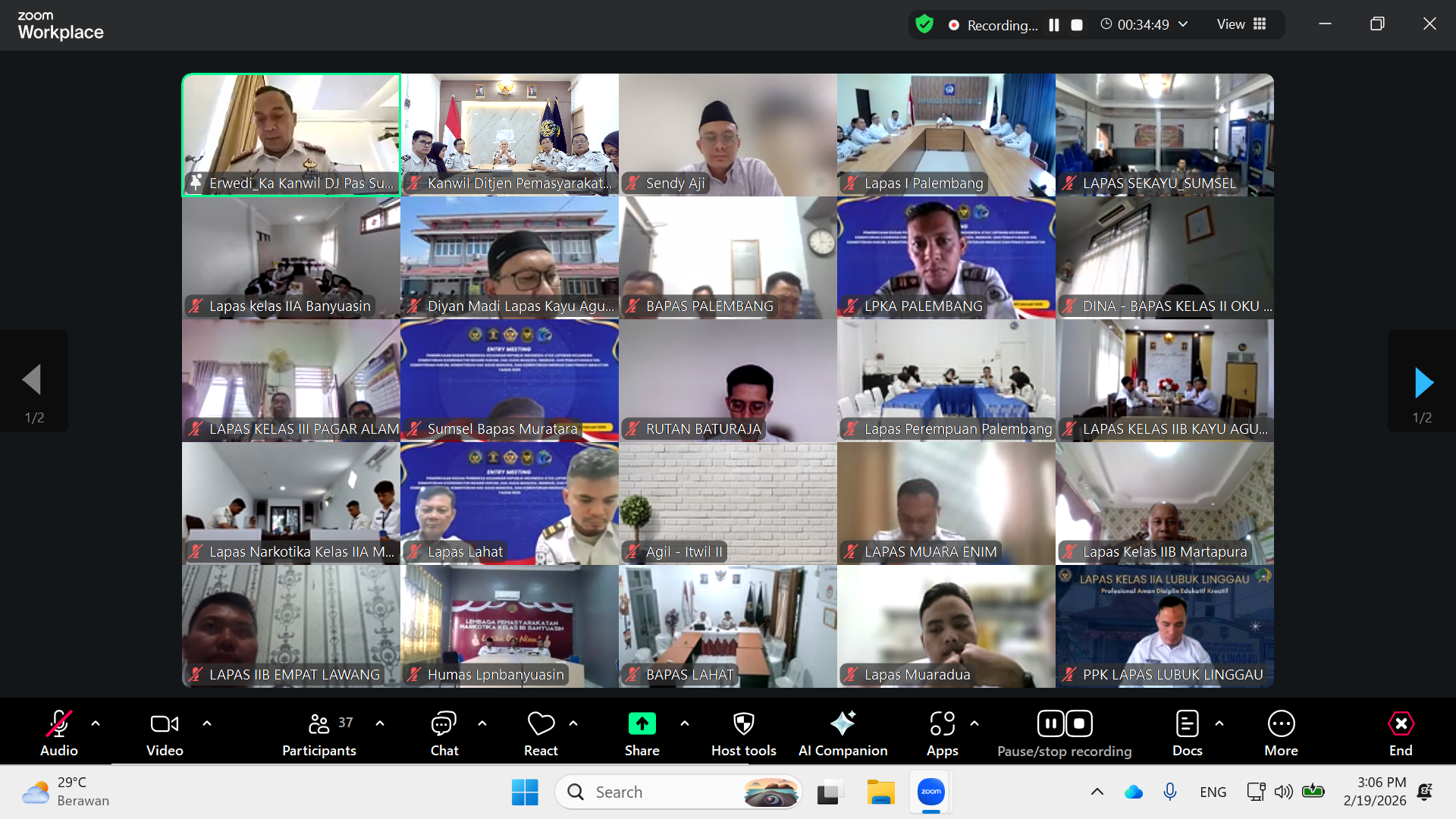 Kegiatan dibuka secara resmi oleh Kepala Kantor Wilayah Ditjenpas Sumsel, Erwedi Supriyatno, didampingi Kepala Bagian Tata Usaha dan Umum, Zulkifli Bintang. Exit meeting tersebut turut dihadiri Ketua Tim III BPK RI, Sendy Bayu Aji beserta tim pemeriksa, serta diikuti oleh seluruh Kepala UPT Pemasyarakatan se-Sumatera Selatan secara virtual.