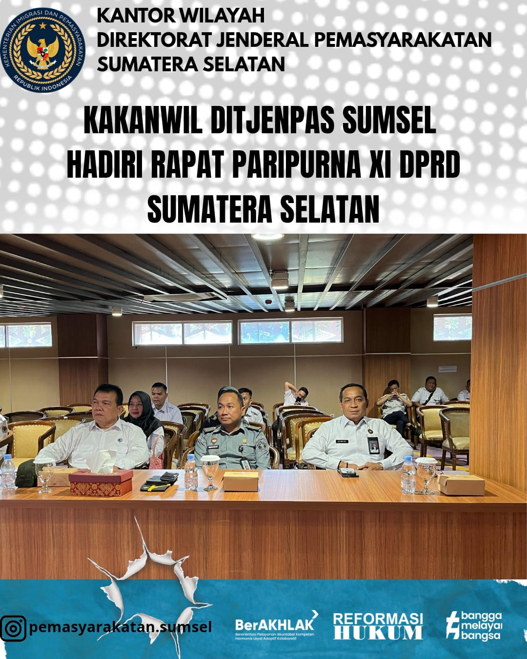 Palembang, 14 April 2025 – Kepala Kantor Wilayah Direktorat Jenderal Pemasyarakatan (Kakanwil Ditjenpas) Sumatera Selatan, Erwedi Supriyatno, menghadiri Rapat Paripurna XI DPRD Provinsi Sumatera Selatan yang digelar pada hari ini di Gedung DPRD Sumsel, Palembang.