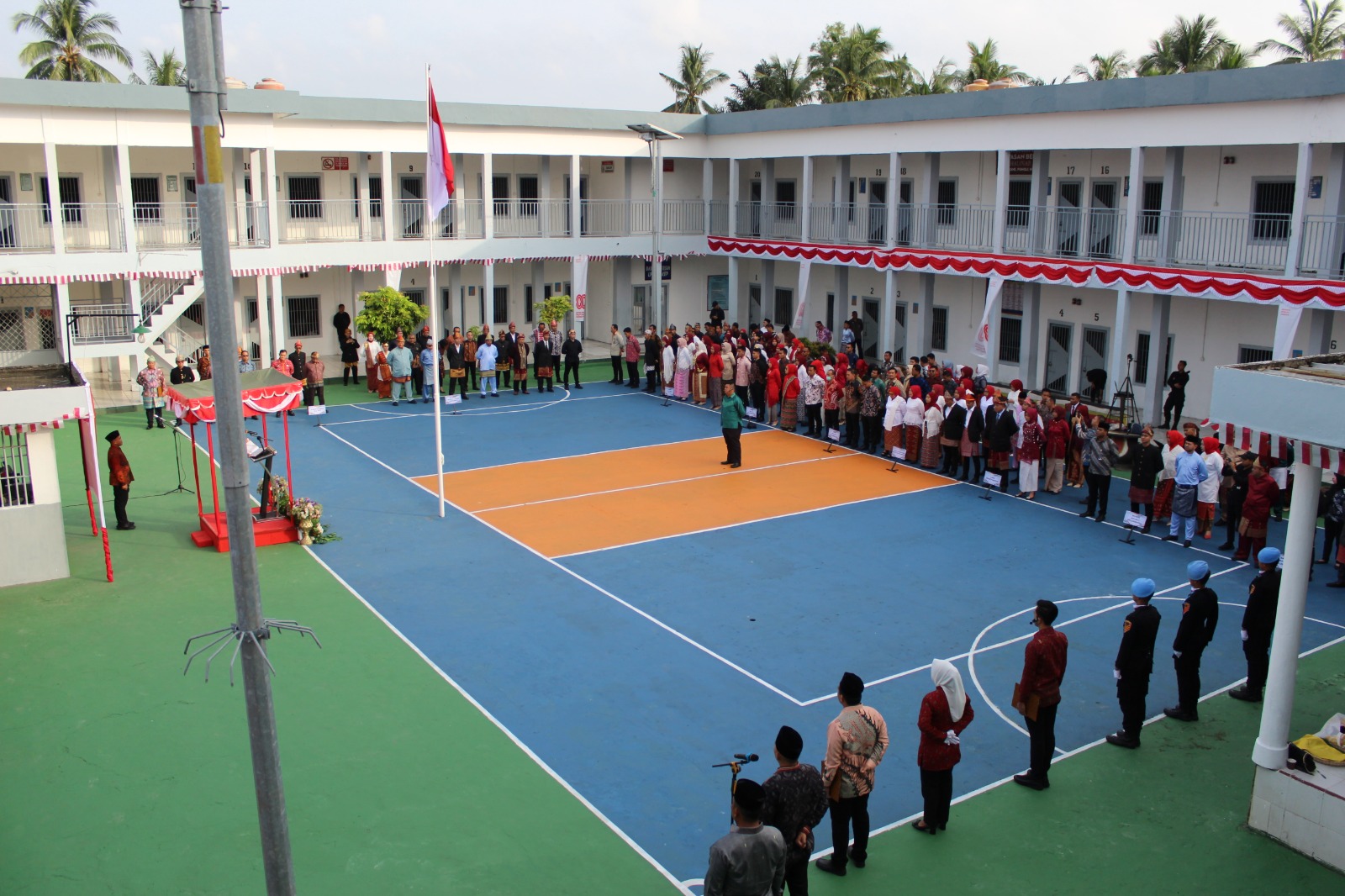 Upacara diikuti oleh pegawai LPKA serta perwakilan Unit Pelaksana Teknis Pemasyarakatan di Kota Palembang, yaitu Lapas Kelas I Palembang, Lapas Perempuan Kelas II Palembang, Rutan Kelas I Palembang, Balai Pemasyarakatan (Bapas) Kelas I Palembang, Rupbasan Kelas I Palembang, serta Lapas Narkotika Kelas IIB Serong. Bertindak sebagai komandan upacara adalah Kepala Rupbasan Kelas I Palembang, sementara Kepala Bidang Pelayanan dan Pembinaan Kanwil Ditjenpas Sumsel, Misbahudin, bertugas sebagai inspektur upacara.