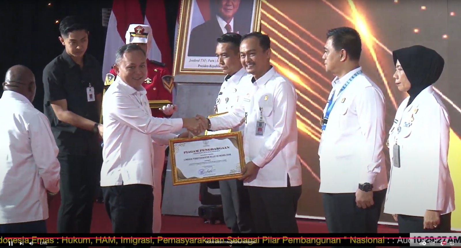 Muara Enim – Dalam acara Refleksi Akhir Tahun 2024, Lembaga Pemasyarakatan Kelas IIB Muara Enim kembali menorehkan prestasi membanggakan dengan meraih penghargaan predikat terbaik Pelayanan Publik Ramah kelompok Rentan Tahun 2024 berlangsung di Kampus Politeknik Pengayoman Indonesia Banten . Senin 16/12/2024.